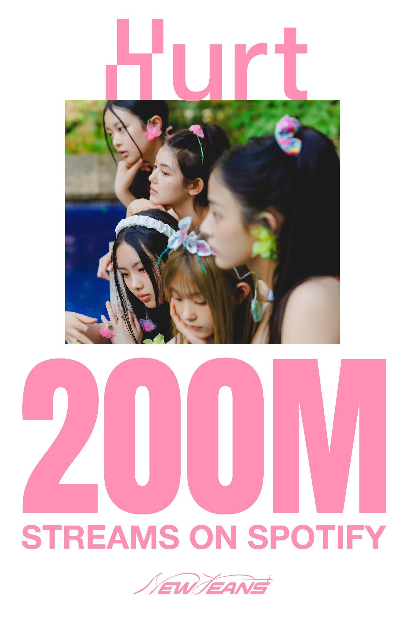 TreacherousHuman on September 15, 2024 11:01 pm [post link](https://x.com/newjeans_ador/status/1835453544419225799?s=46) | caption: >🐰Congratulation!💙 ‘Hurt’ hits 200,000,000 Streams on Spotify!