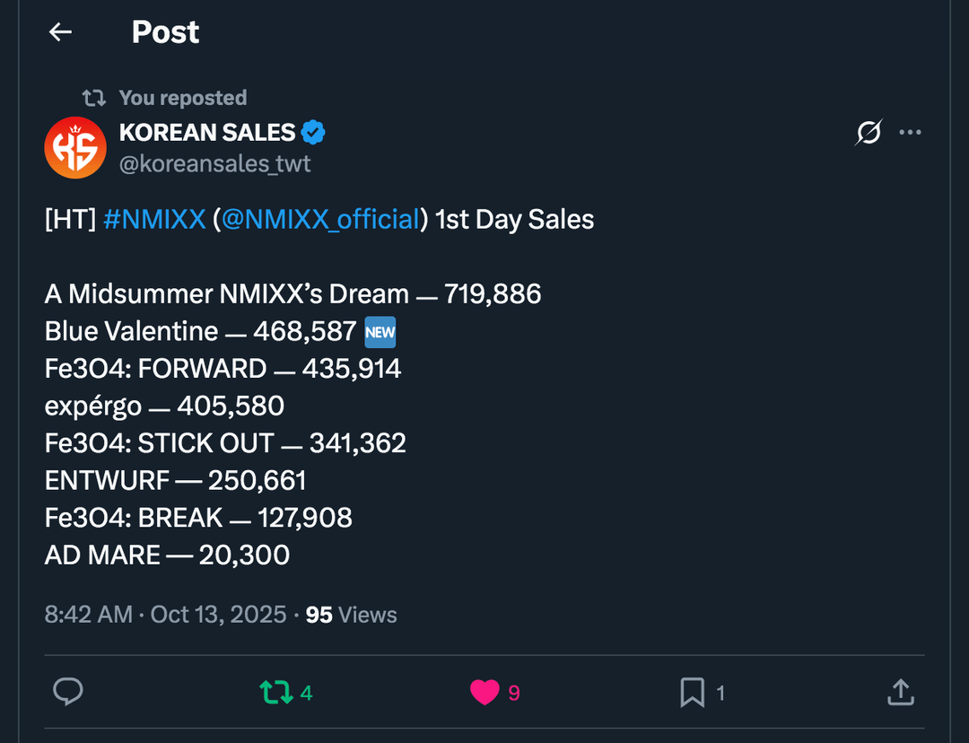 Source 1: [https://xcancel.com/koreansales_twt/status/1977761835983024530](https://xcancel.com/koreansales_twt/status/1977761835983024530)