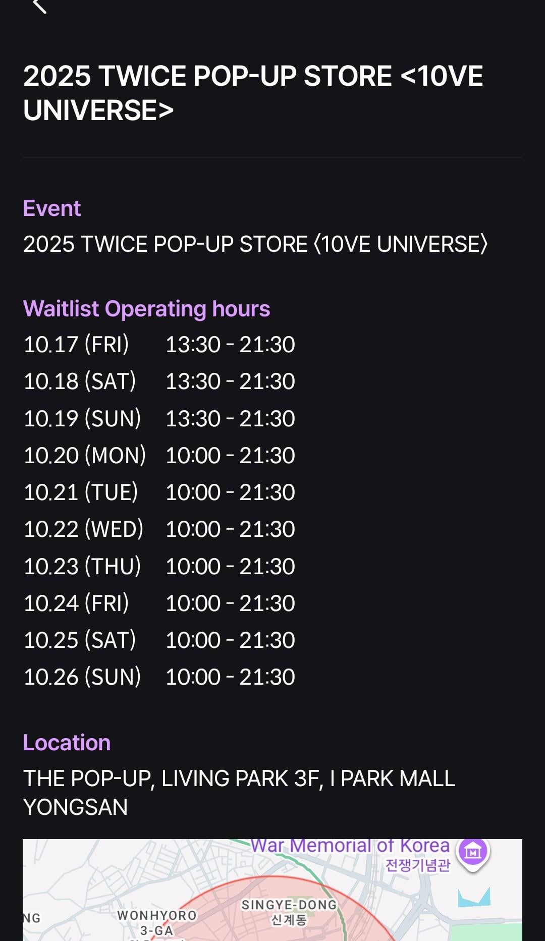 I'm currently in Seoul and am trying to register to enter the popup store through the FANS Onsite Waitlist.