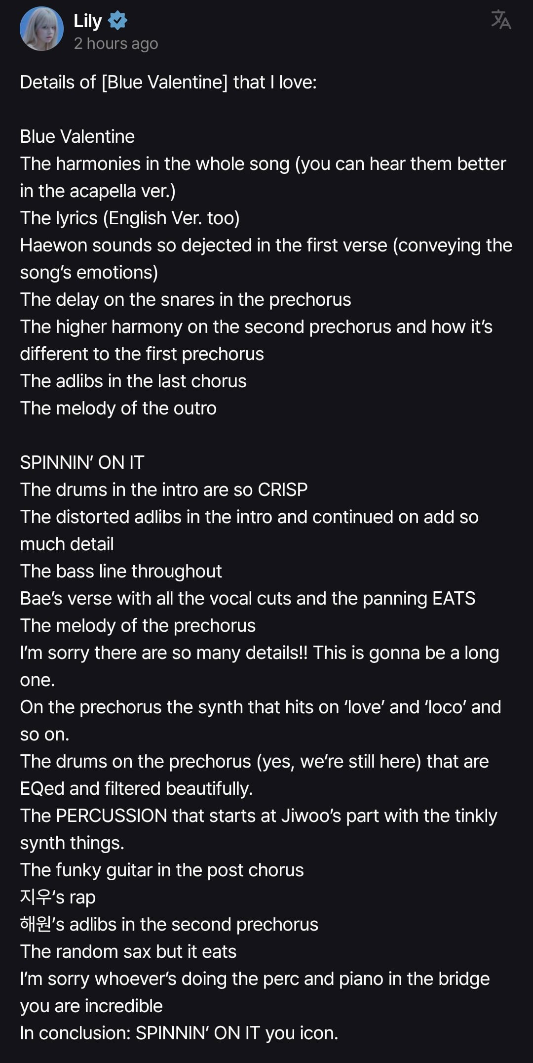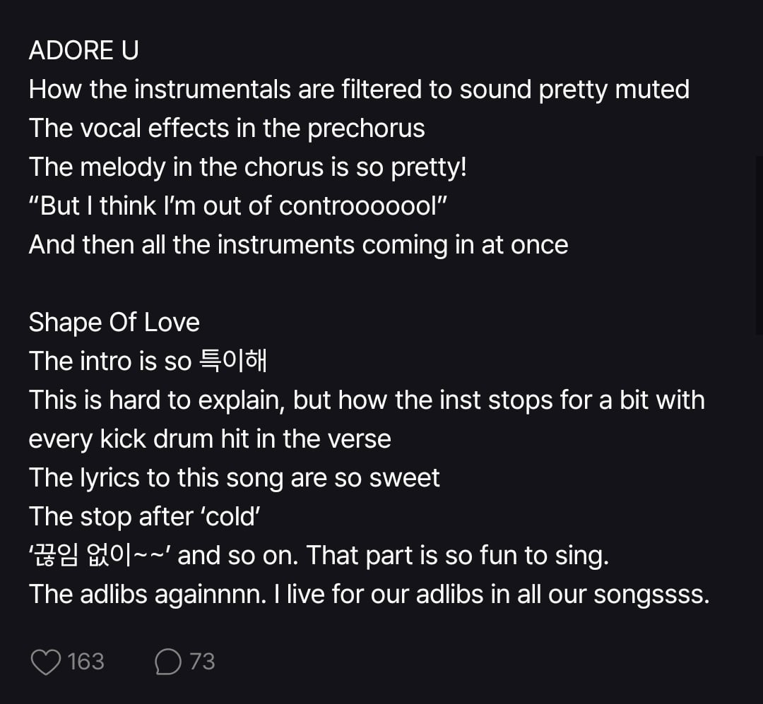 251031 Lily FANS Update – ‘Blue Valentine’ Album Song Details that she loves by SapphireHeaven NMIXX 엔믹스