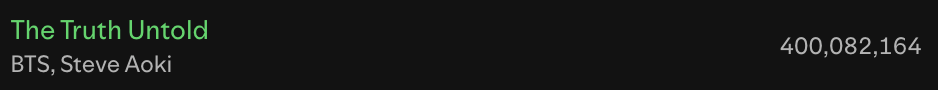 251109 Spotify Milestones: “The Truth Untold” has surpassed 400 million streams by alltherach_ Bangtan Boys BTS 防弾少年団 防彈少年團 방탄소년단