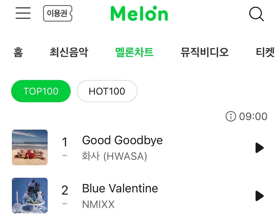 I wasn’t sure who would overthrow Blue Valentine, but I’m very glad it was Good Goodbye. I’ve heard very nice things it and noticed how it slowly crept up the charts as weeks gone by. Congratulations to Nmixx and Blue Valentine for doing so amazingly. It went above and beyond everyone’s expectations. I’m so happy the girls were able to see just how much they’re loved. And congratulations to Hwasa and Good Goodbye!!