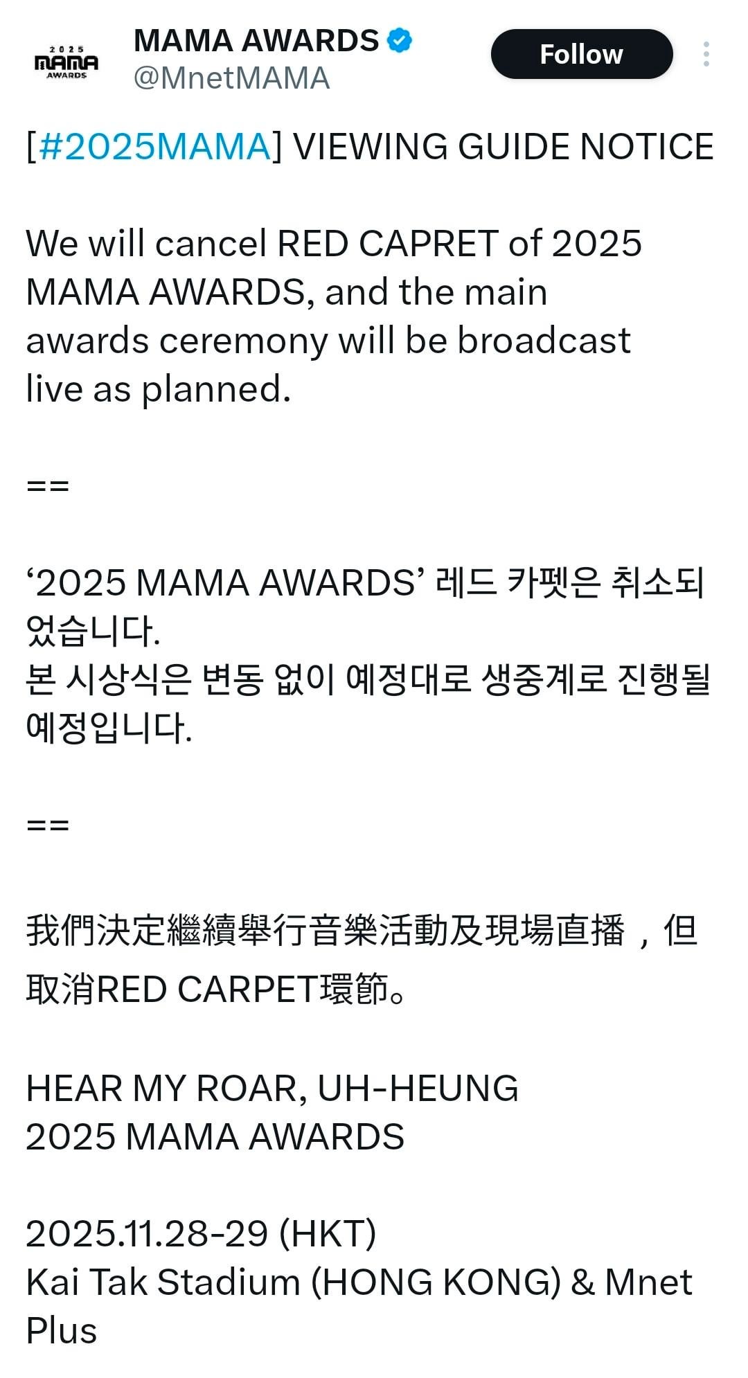 | ๐Ÿ‡ญ๐Ÿ‡ฐ | Hong Kong (HKT, UTC+8) | Nov 28, 6:30 PM |