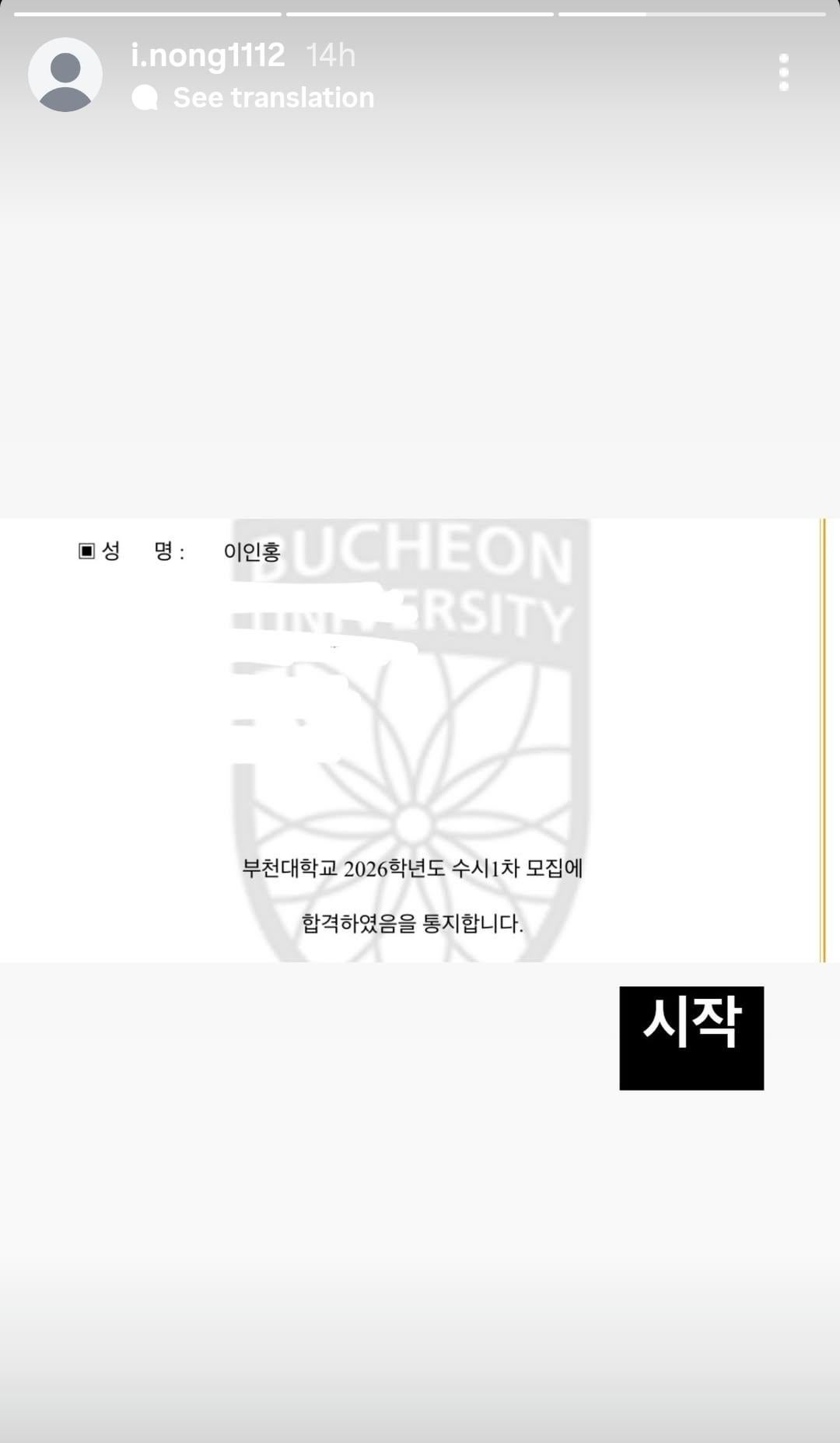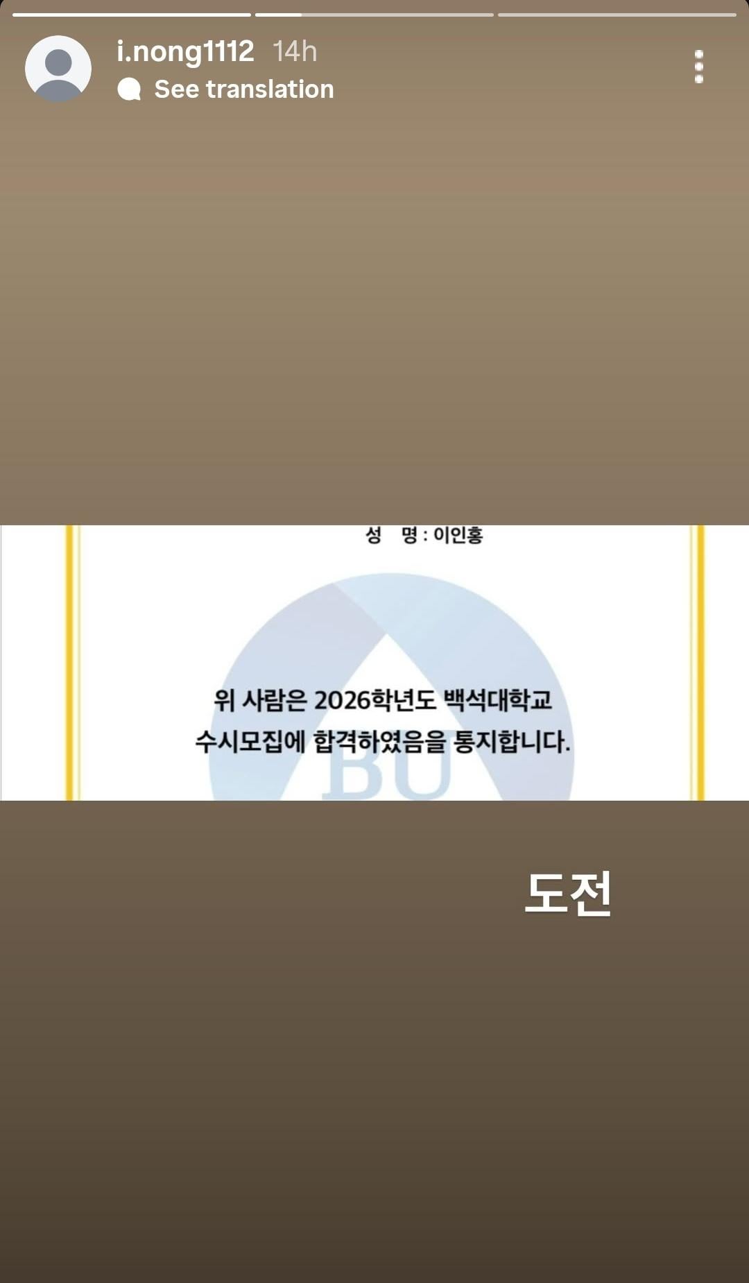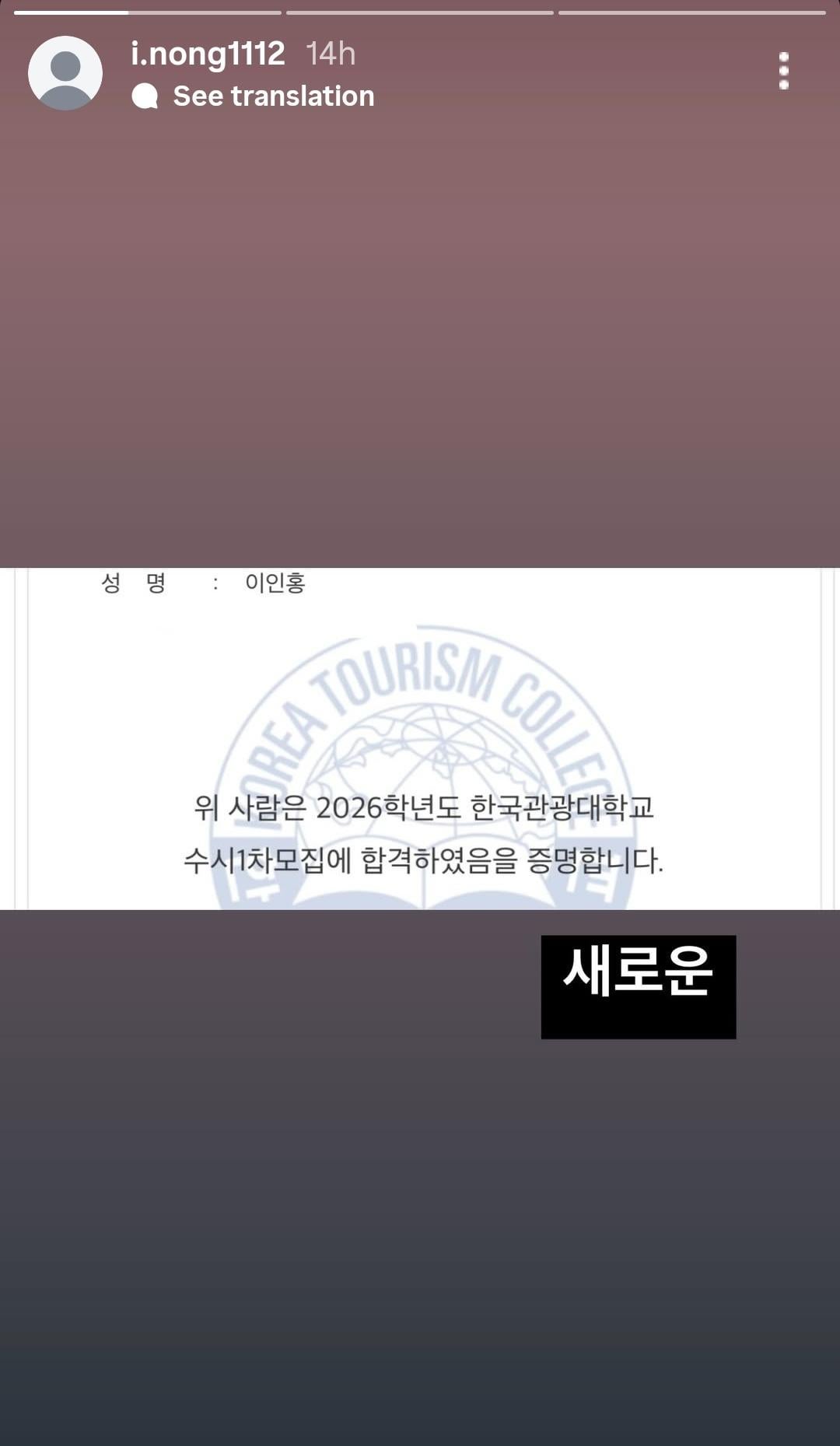 Lee Inhong (former WHIB) has announced that he has been accepted to Korea Tourism College, Baekseok University and Bucheon University for the 2026 academic year