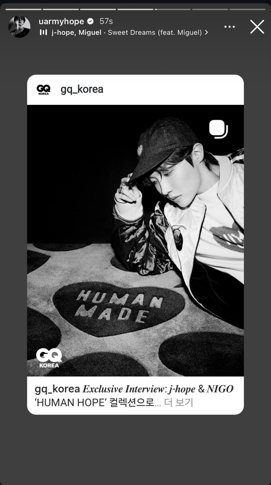 [stories link](https://www.instagram.com/stories/uarmyhope/3779823470713660163) | [GQ Korea’s Instagram post with j-hope & Nigo](https://www.instagram.com/p/DRzIJLdkVUp/)