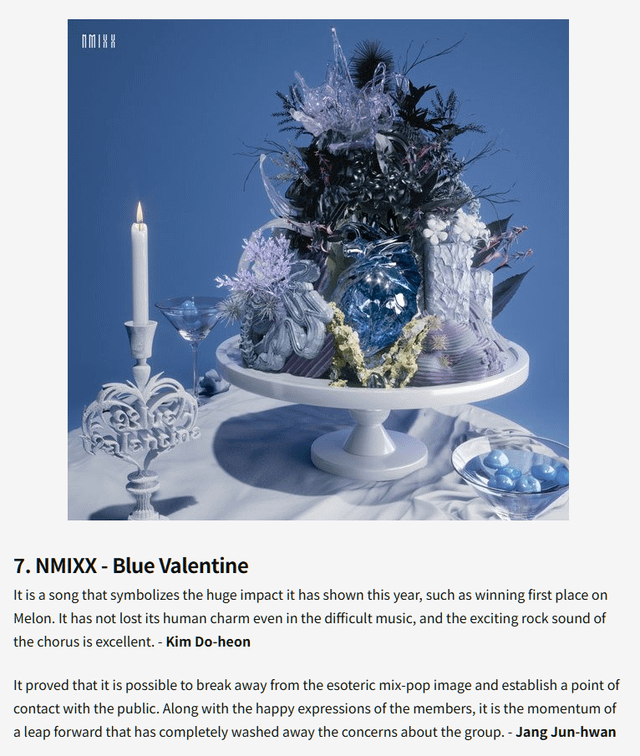 Nmixx really did put out some amazing music this year! I feel like they finally found what feels right and I’m excited for what’s ahead. Papillon and Blue Valentine are amazing songs. Even though High Horse and Spinnin’ On It weren’t mentioned, those two songs also made a lot of ears perk up.