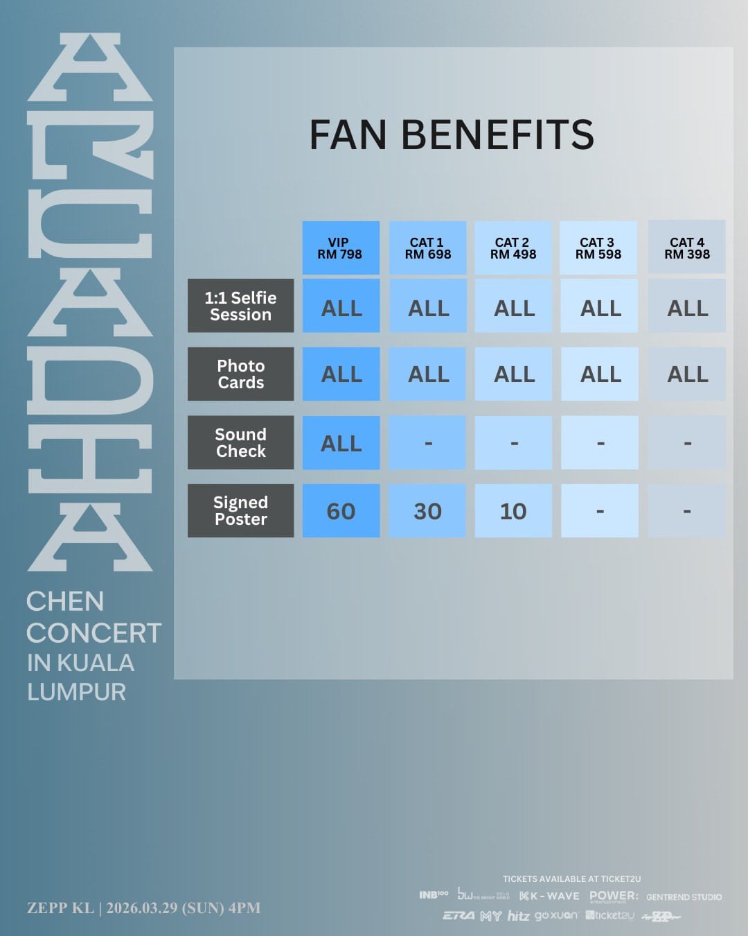 📅 Mar 29, 2026 ⏰ 5PM KST 📍 ZEPP KL, Kuala Lumpur, Malaysia 🎟️ RM 398 – RM 798 🎫 Ticket sales starts on Dec 23, 11AM KST via https://www.ticket2u.com.my/event/cd?id=47801&q=e5651da12da8a76b4408c14624ac6c3b by bachhoe07 EXO