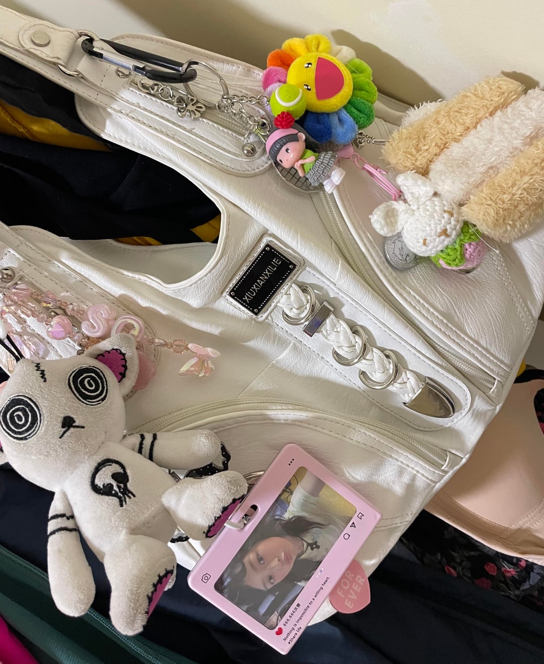 I had another pc keychain with another pc which my friend had gifted me of another idol… I completely lost it😖 It either fell off or someone stole it which would be no surprise cause it was so gorgeous. HANNI IS MY ULTIMATE BIAS THOUGH. My mama recently bought me a new jeans album so I displayed my new hanni pc😌❤️