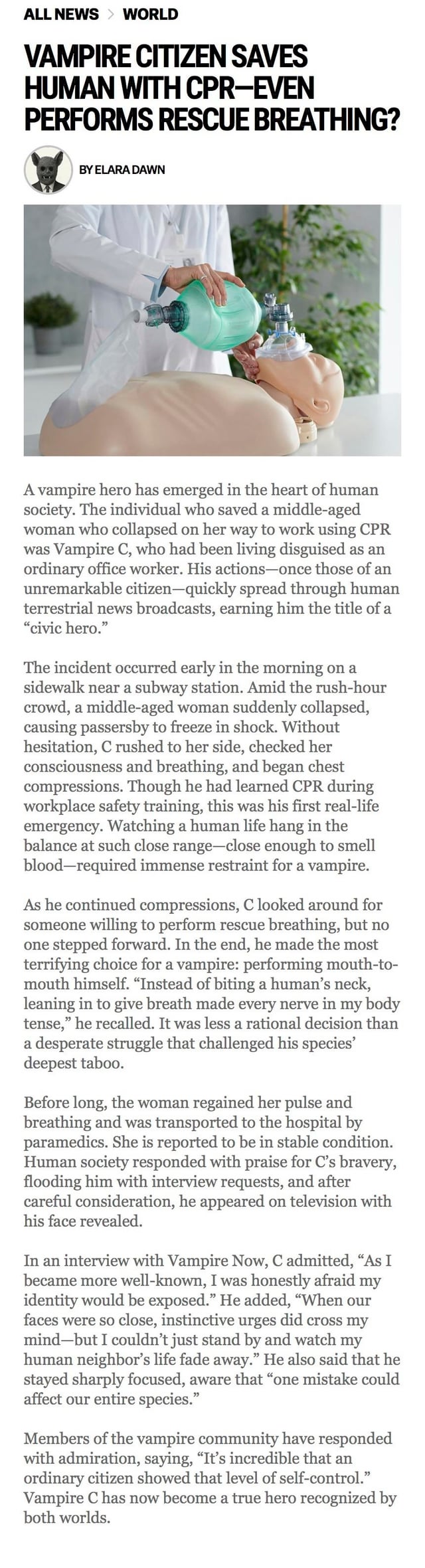 Vampire C is truly admirable, wow! The humans don’t even know the extent of his heroics and the restraint it took