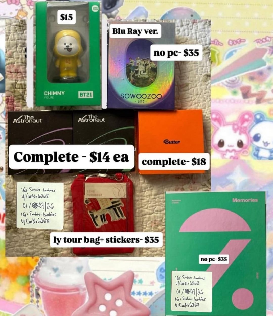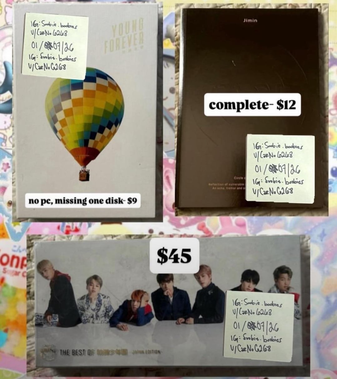 Hii Army,, these need new homes pls help All items are OFFICIAL!!! Prices negotiable for bulk buyers !! I also have ALOT of other grps just throw a message and I can list them all :)))) tysm !! by CarNo6268 Bangtan Boys BTS 防弾少年団 防彈少年團 방탄소년단