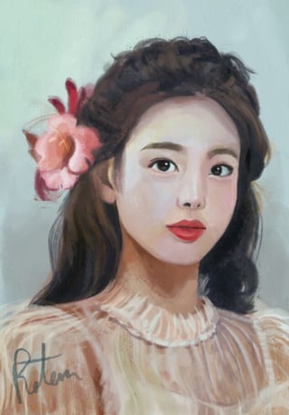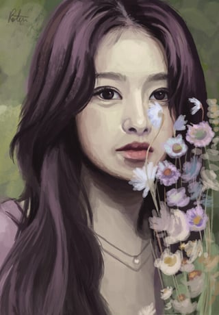 It's been three years since my last Twice portrait. Probably should've picked a different image, it wasn't a rewarding experience drawing her pretty lips only to cover them with those flowers 😅 by rotg20 TWICE