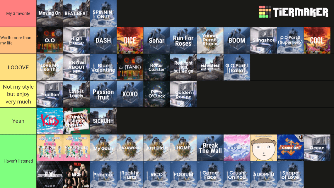 Btw the songs in the categories themselves are alos ranked (like moving on > beat beat > spinnin on it)
