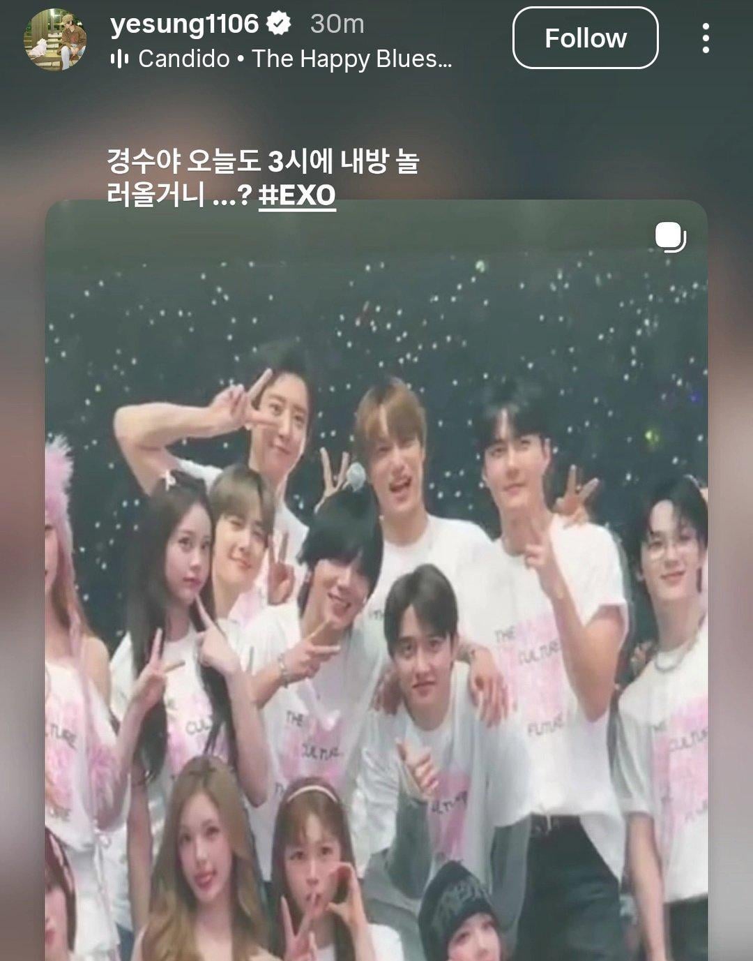 260201 Super Junior Yesung Instagram Story Update with EXO: “Kyungsoo, are you coming over to my room again today at 3…?” by bachhoe07 EXO