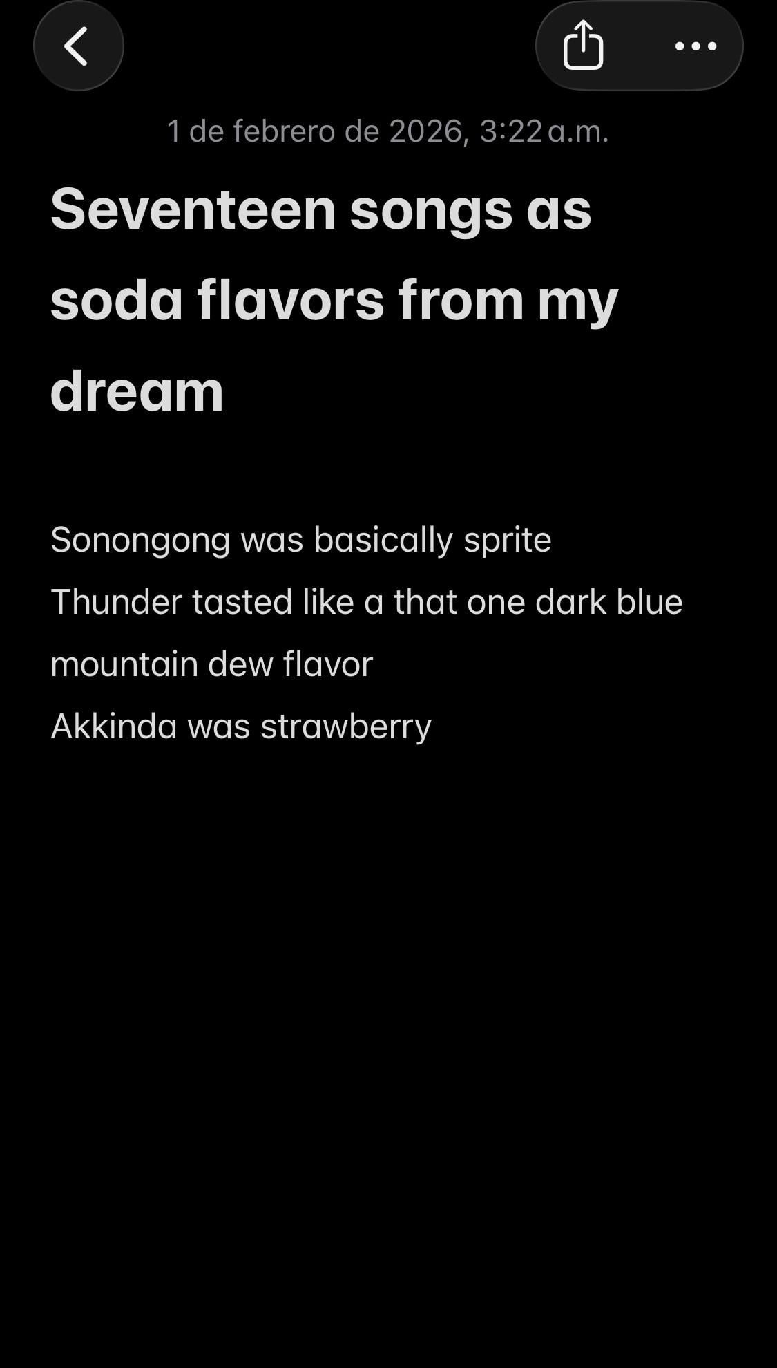I woke up at 3AM and apparently wrote this down, I thought it was entertaining lol! I have no memory of it but somehow it kinda makes sense?? If other songs were flavors what would they be? Lol by AnalysisFluffy743 SEVENTEEN