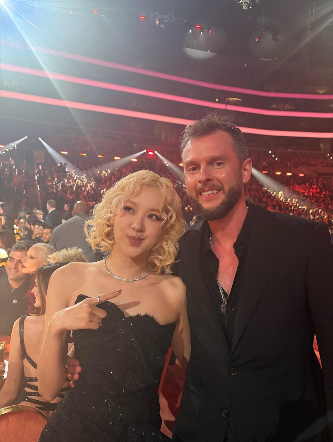 >To @brunomars for sharing my first grammy night with me and for bringing out the inner rock chick in me. A literal dream.