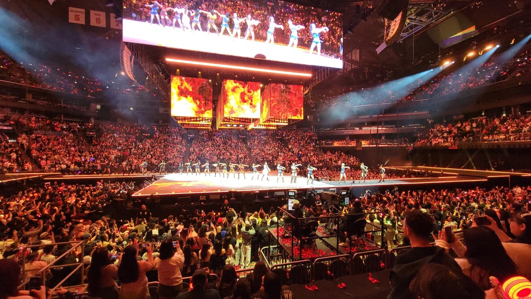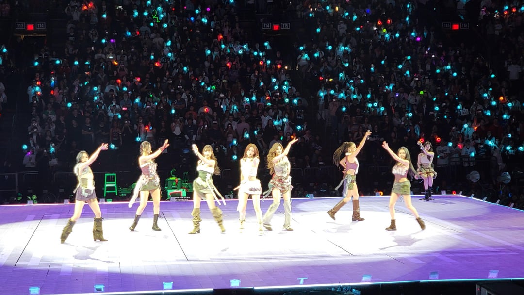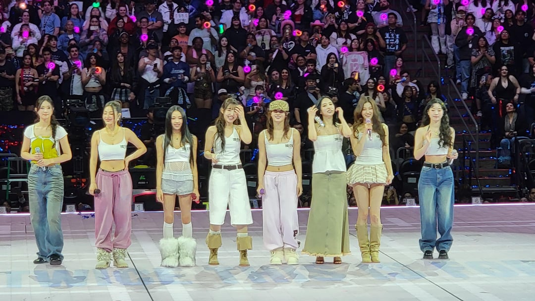 I always hated how so many groups just pass by Phoenix, we are the 5th biggest city in the US, you think more groups would travel here (how did Itzy not come back to us?)! And for smaller groups that do? Way too expensive or sold out instantly like Purple Kiss, CHUU, Katseye, or ARTMS. It felt like luck when MAMAMOO announced they were coming to Glendale which made me burst in joy as a MOOMOO. But when TWICE announced that they were finally coming here, I was actually in shock. I knew from that announcement, I was willing to throw down the cash for my best possible experience at the tour. And I did. I bought the online varsity jacket even for the concert when the online merch dropped. The VIP experience I would say was mixed for me, I arrived early and got freebies and waited in the VIP merch line and bought the sweatpants and the uniform shirt as well as forking a bit extra over for the tote bag to at least carry everything (I spent over $200, can I at least get a bag?). Japan had way better looking merchandise tbh. Waiting for the gates to open was boring as hell and then once they did open so I could at least get something to drink (glad I ate before hand), the grab-n-go stations were awful, we had to pour drinks into a plastic cup (which was weird because I don’t think we had to do that later after soundcheck, advertising block maybe?) and then all the kiosks stopped working except for one. I just said screw it and left for my seats. Once soundcheck happened it went fast with no interactions outside of the girls throwing shirts for a minute and sound check was like 10 minutes long. We also saw no Jeongyeon at the soundcheck so we were wondering where she was. That bad news of her being with the flu (like me the other week before) hit literally 10 minutes before the concert even started and I had to yell it out to my section [102] on what was going on with her.