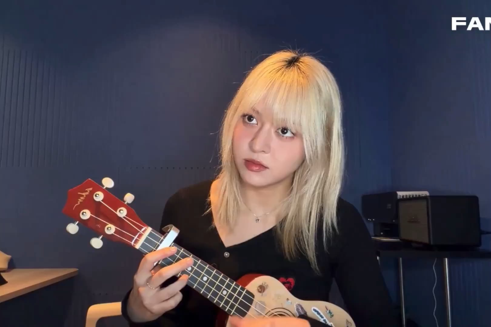 Source is the Fans app [Lily livestreamed Fri night and did some covers with her new ukelele]; H/T nmixxpics for the clip:
