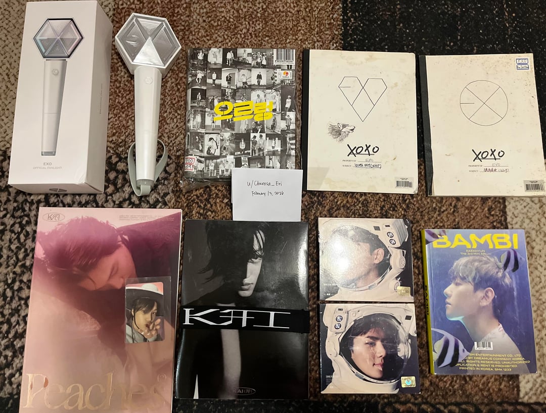 * Version 3 EXO Light Stick, Growl (unsealed), XOXO (both version|unsealed), Baekhyun Bambi (unsealed), Kai Peaches (with PC&Poster|unsealed), Kai MMMH (unsealed), Sing For You (Chen&Sehun version|unsealed)