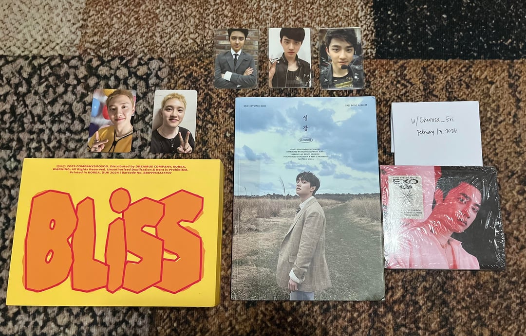 * D.O MAMA Photo cards, D.O Growl/XOXO Photo card, D.O Bliss Album (newly opened|complete inclusions|with PC&POSTER), D.O Blossom Album (unsealed), D.O Exist Digipack (sealed)