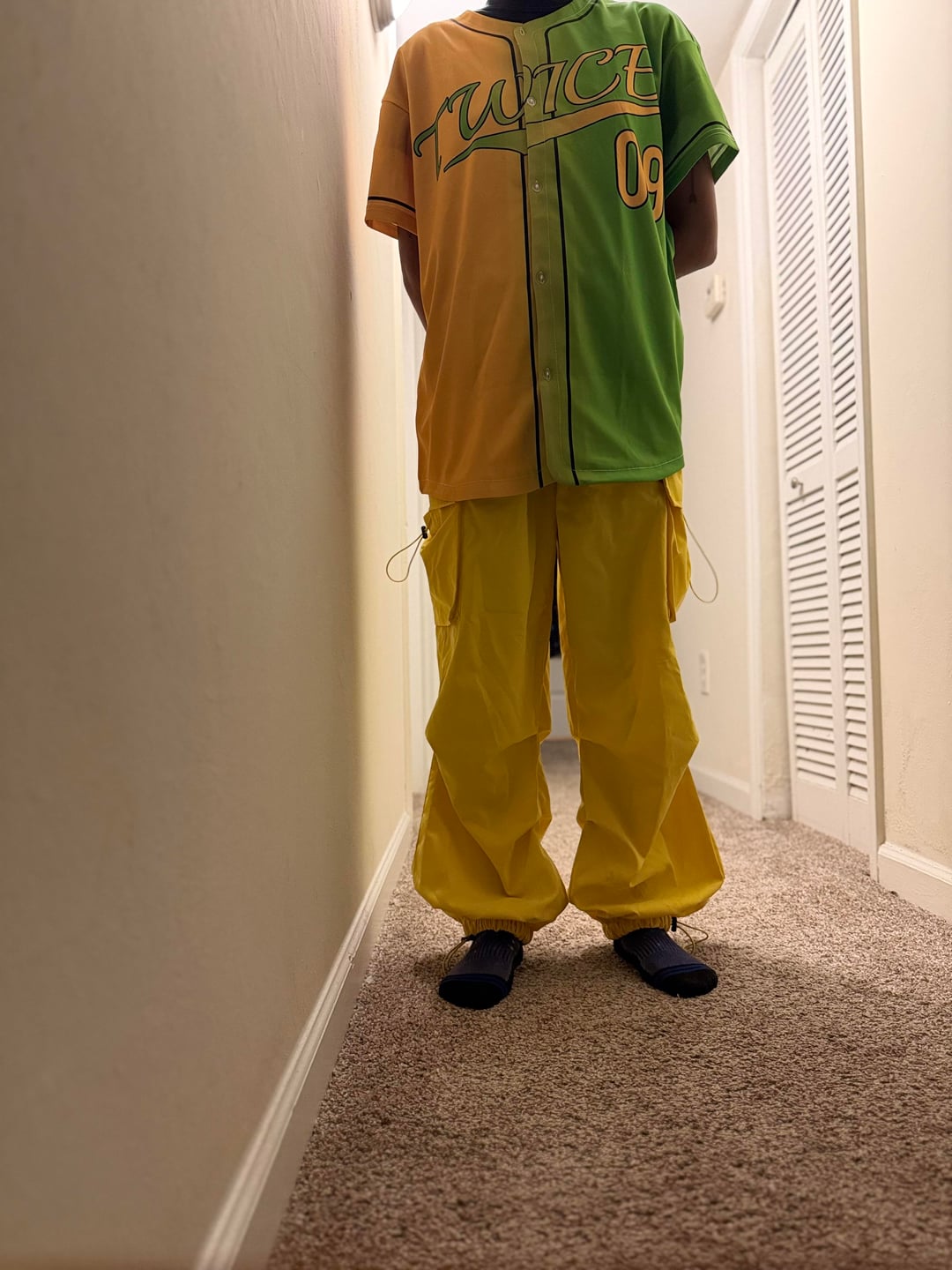 So I made a post a few weeks ago about Jihyo & Jeongyeon’s colors because I was getting a jersey custom-made for the concert and I know the colors wasn’t an exact match, but it was as close as I could find. The jersey looks a tad bit darker in person and the pants are a little bit brighter than expected. I just wanted to get you guys thoughts on the outfit and if yall think maybe I should go for a little bit darker yellow pants to match the top or if this looks fine the way it is ☺️