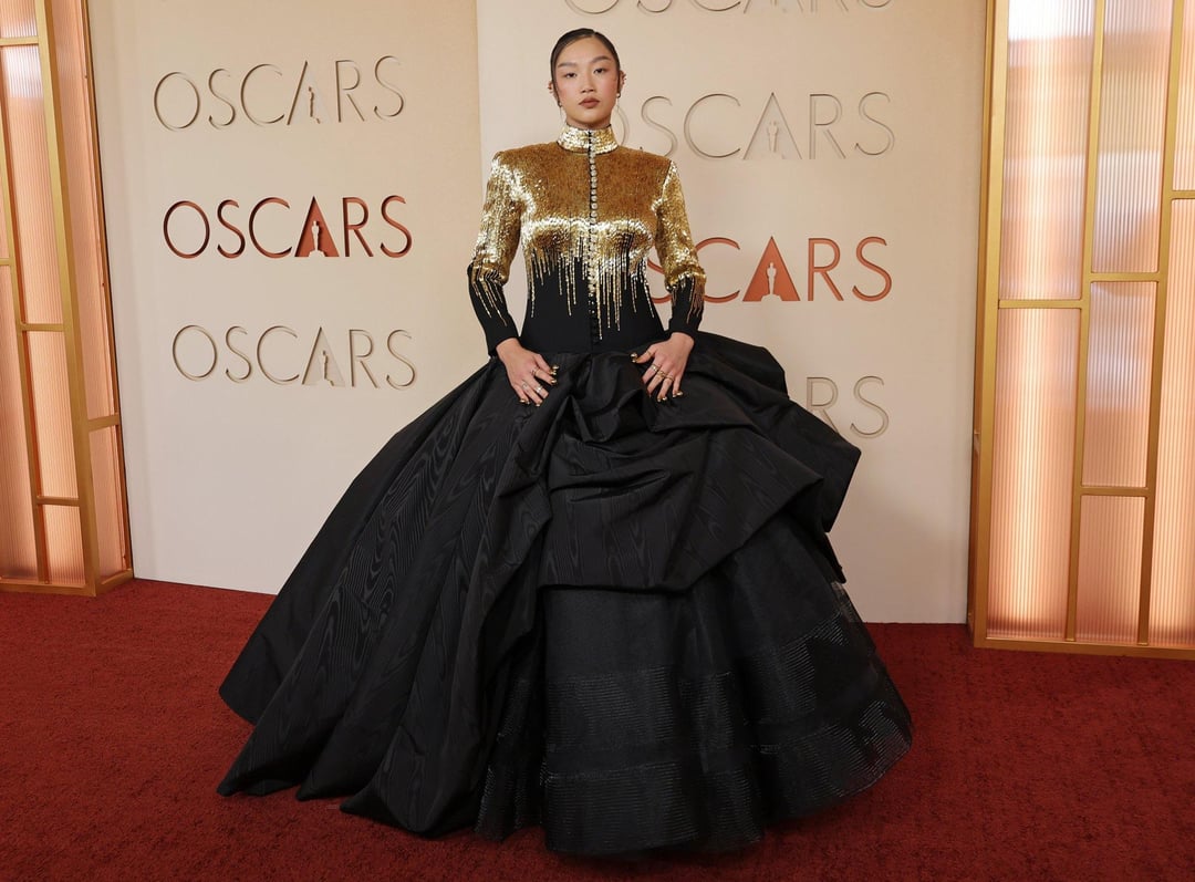 That Thom Browne on Audrey is gorgeous. She always makes cool/interesting fashion choices. This one feels appropriately a little more restrained or formal for the Oscars, but the tailored jacket look on top with the grand ball gown skirt still feels really distinct and *her*.