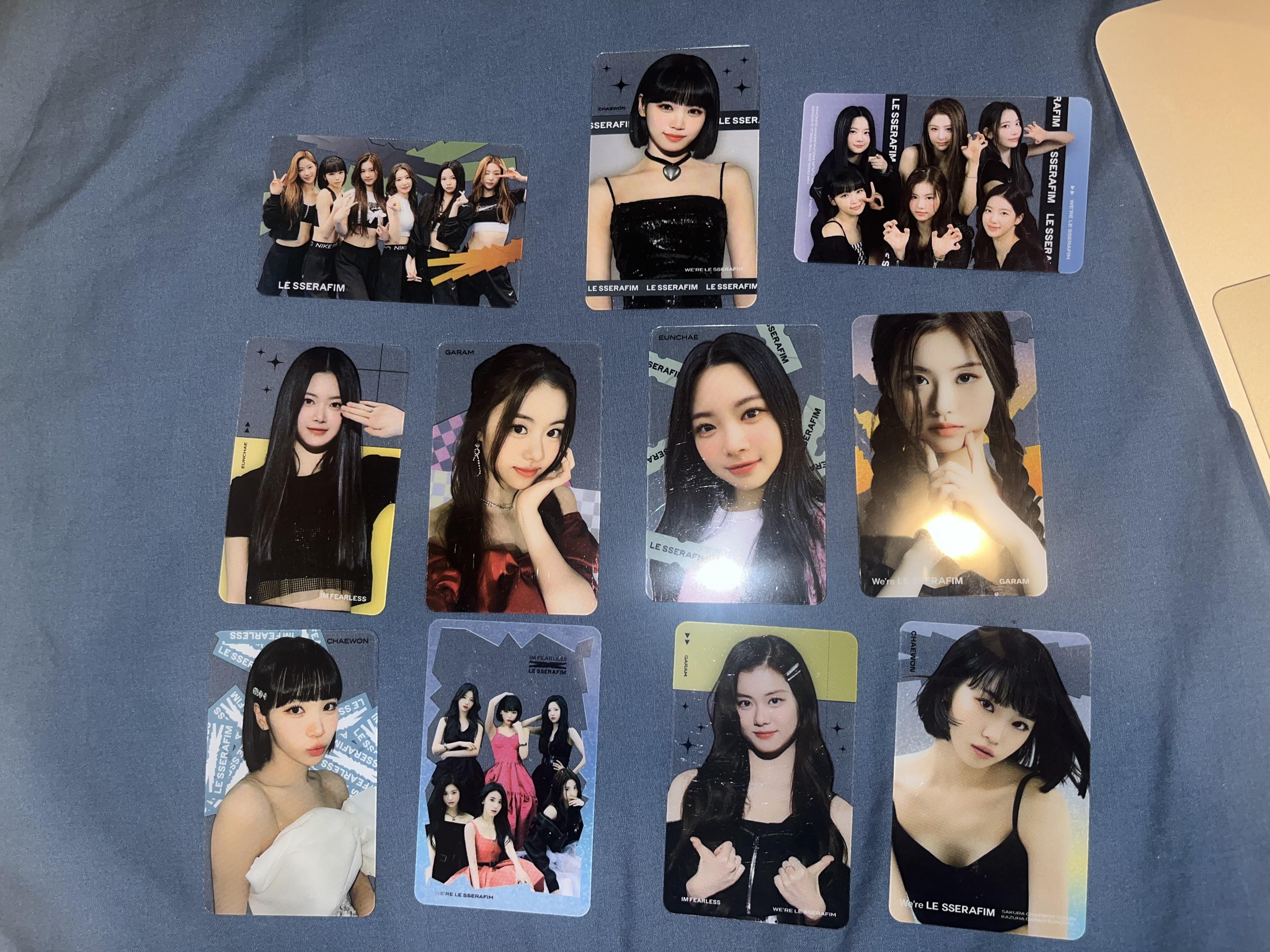 These seem like old photo cards from when Le Sserafim had six members and are from the Fearless EP which is the only release Kim Garam was in