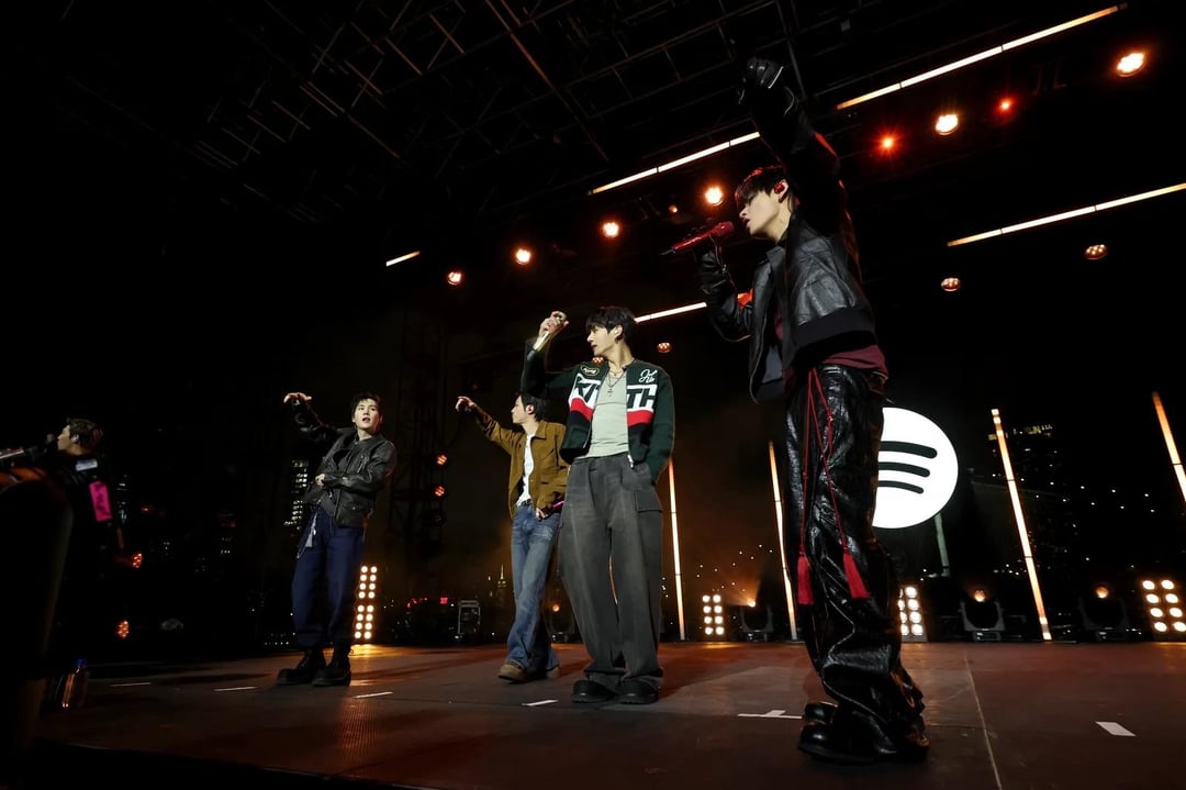 > In their first US performance in almost four years, @bts_bighit, the biggest band in the world, performed songs from their new album on a chilly Manhattan night
