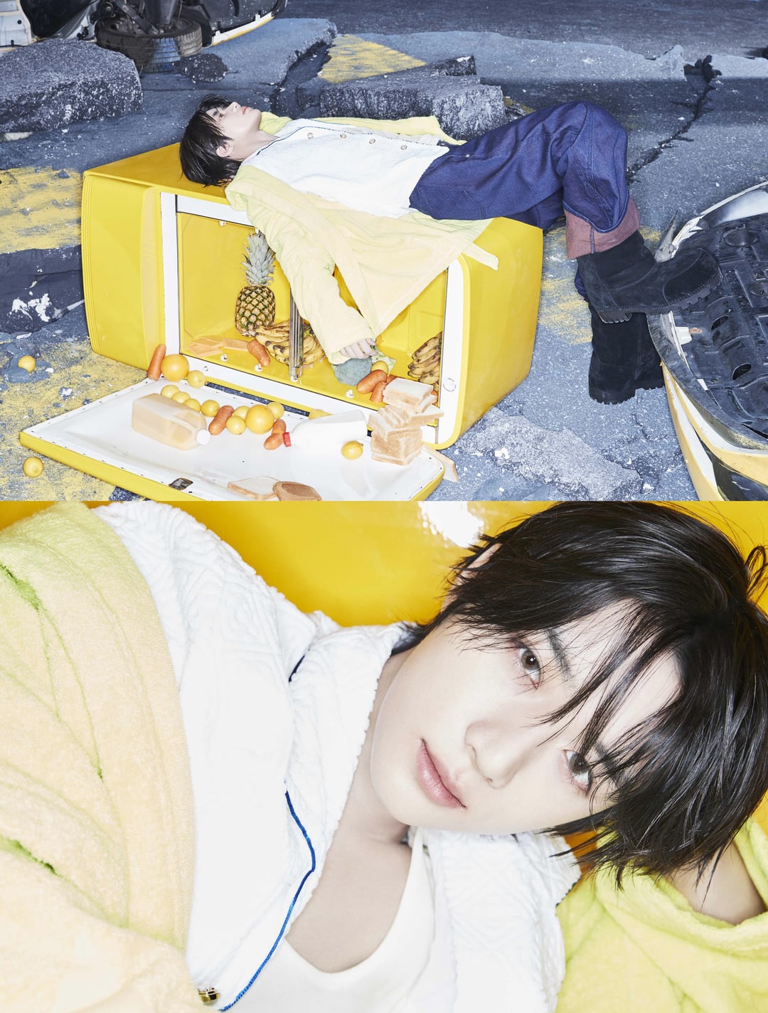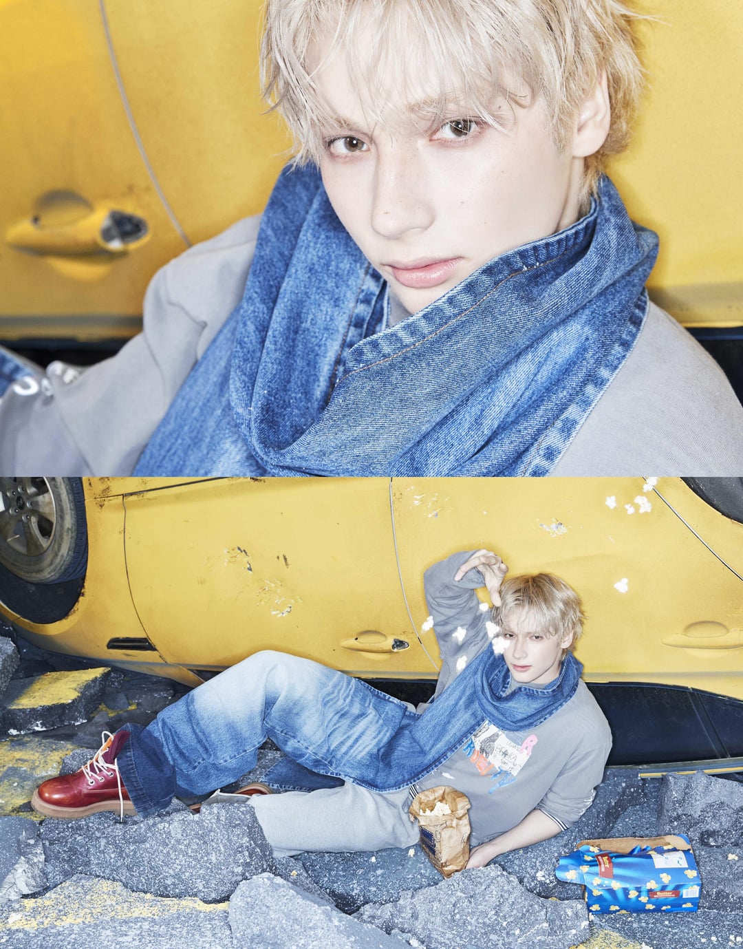 i LOVE how chaotic this set is, and i like how they’re snacking on random things to tie to the concept of hunger! i also love their messy hair, it’s really cute hehe 💗 also by this and the thorn concept, i’m guessing all photos will incorporate thorns in some way!