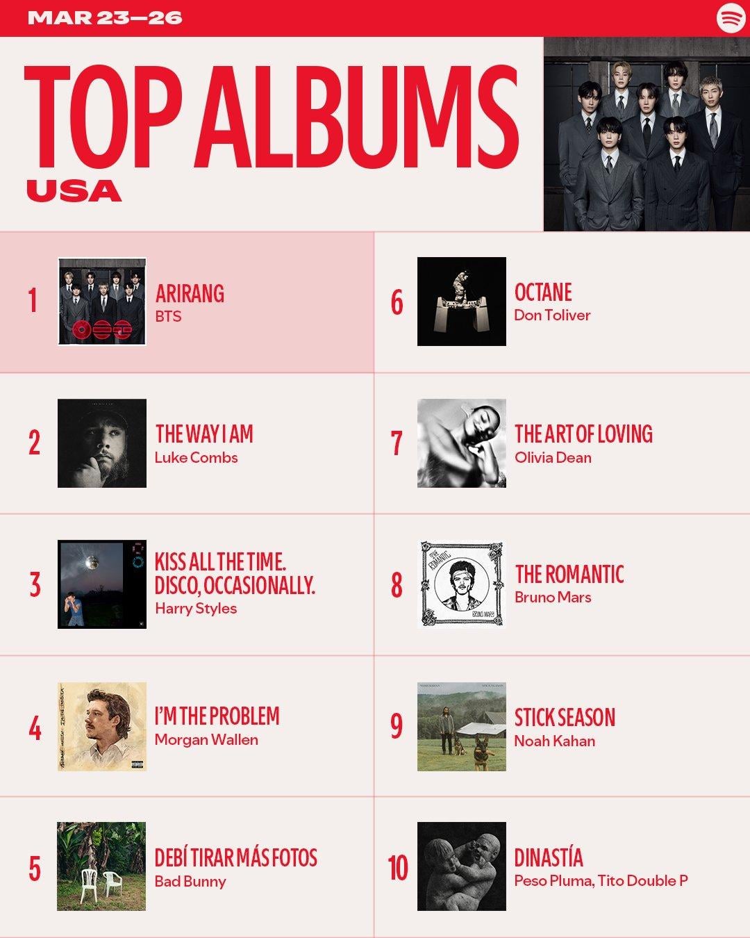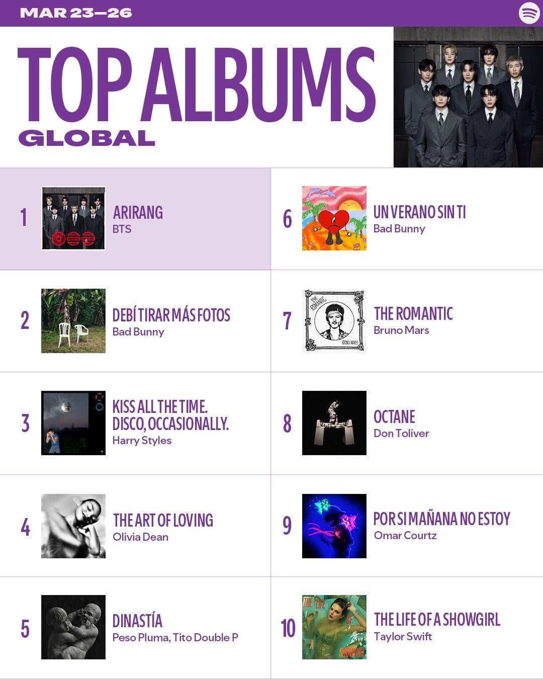 ‘ARIRANG’ and “SWIM” by BTS remain at #1 on the Spotify Weekly Global & USA Top Albums and Weekly Global Top Songs Charts by impeccabletim K-pop K-pop news KPop KPop news