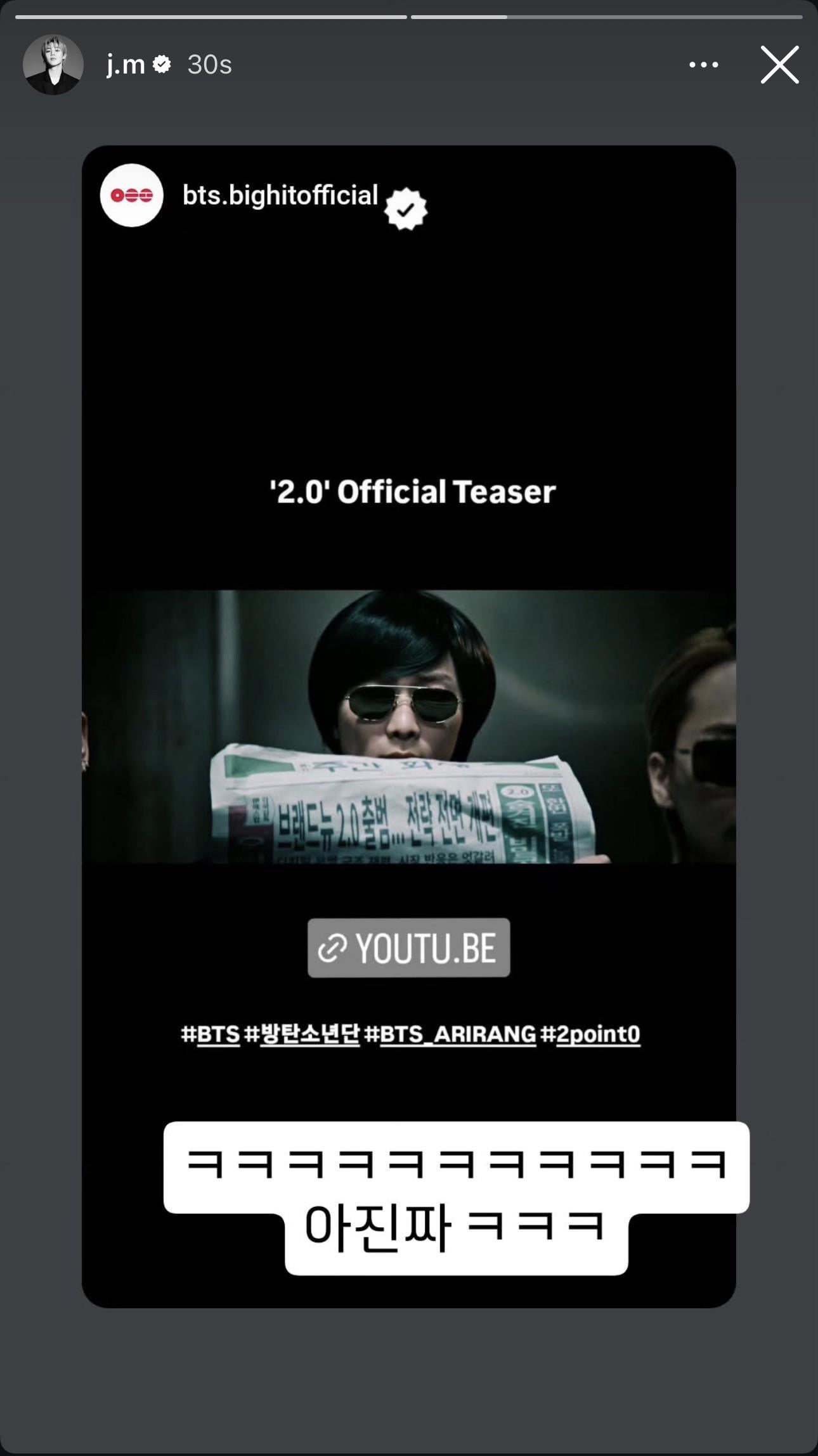 The only things I learned about korean is that backward F and alot of them mean hahahah cause Jungkook writes it so often on the other members posts and comments to fans feels like I got trained about this without intention. So when I saw this post I was like “oh I know this one 😃”  😂
