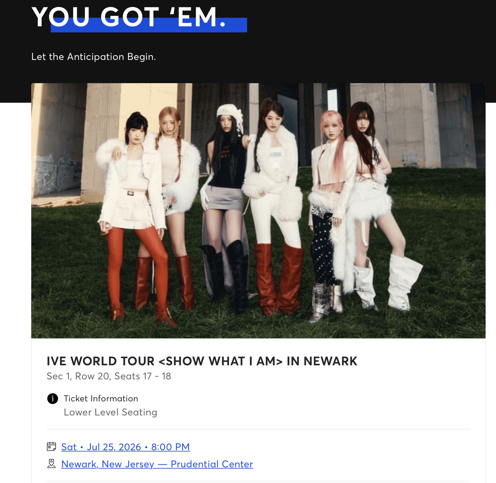 babynamedsteph on April 2, 2026 8:14 pm IVE as your first concert!! you’re going to have so much fun!! I will be there too 😇