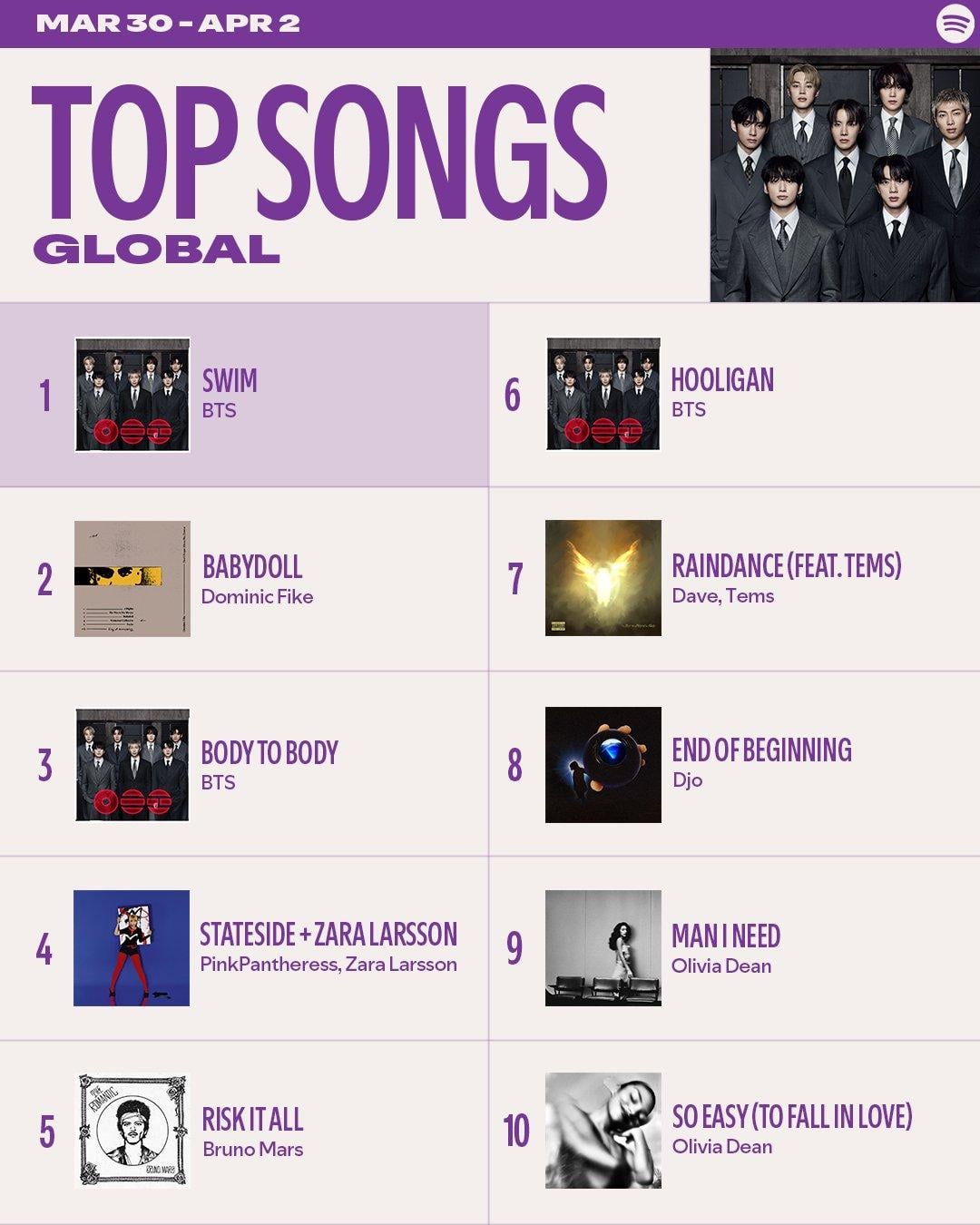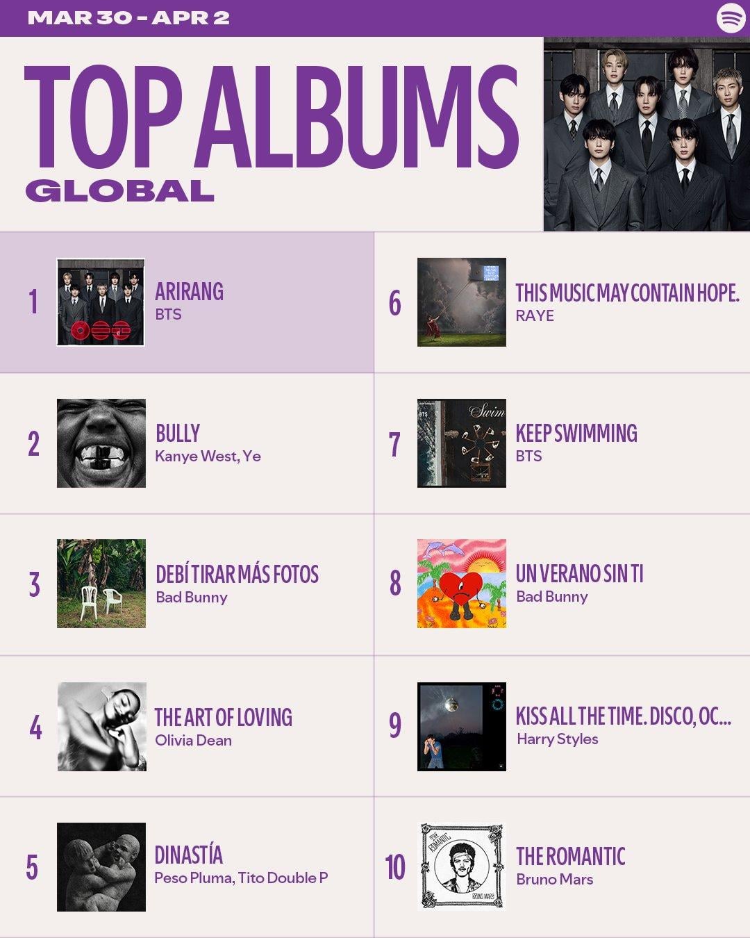 ‘ARIRANG’ and “SWIM” by BTS remain at #1 on the Spotify Weekly Global Top Albums and Weekly Global Top Songs Charts for a 3rd week by impeccabletim K-pop K-pop news KPop KPop news
