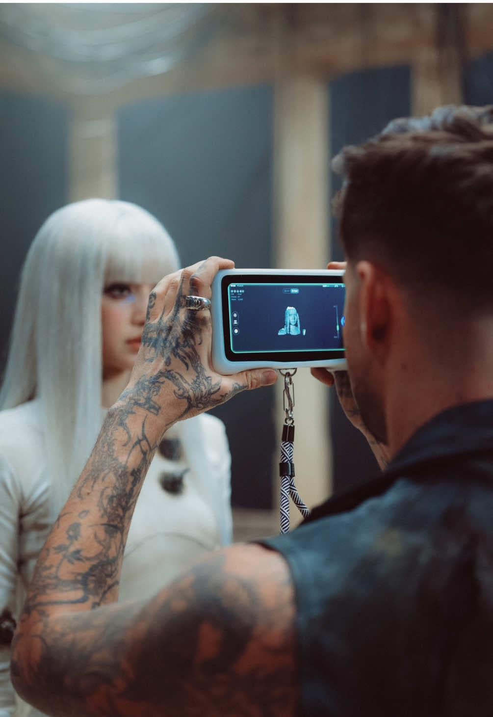 Is he doing a 3D scan of her?