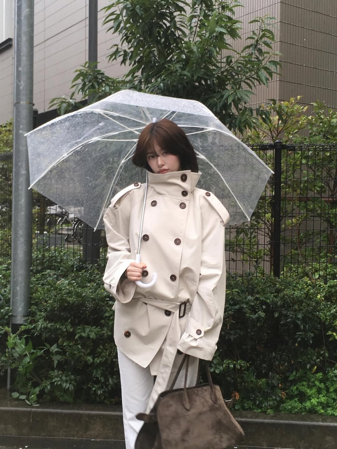 Crazy how she can make a rain coat and umbrella look great