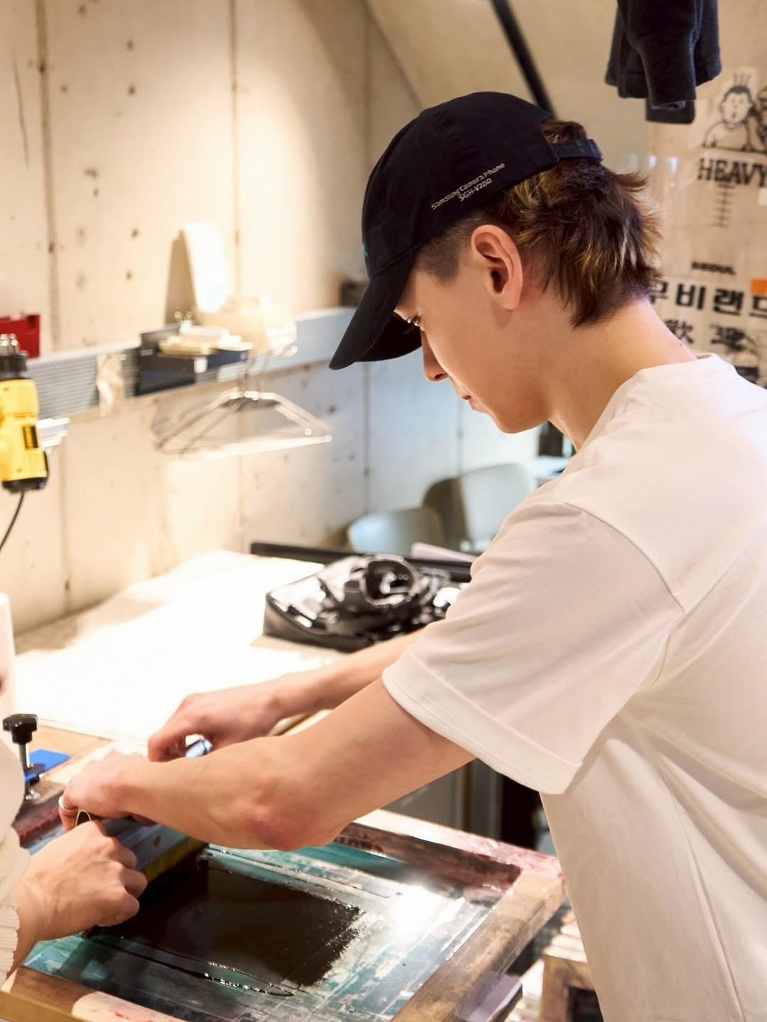 Caption: A must-try at Movie Land👕: Silk-screen printing service. You can choose your own graphics and colors🎨 This month’s curator, Vernon, has selected the phrase “No Animals were harmed”🐴 a line that always appears in movies featuring animals