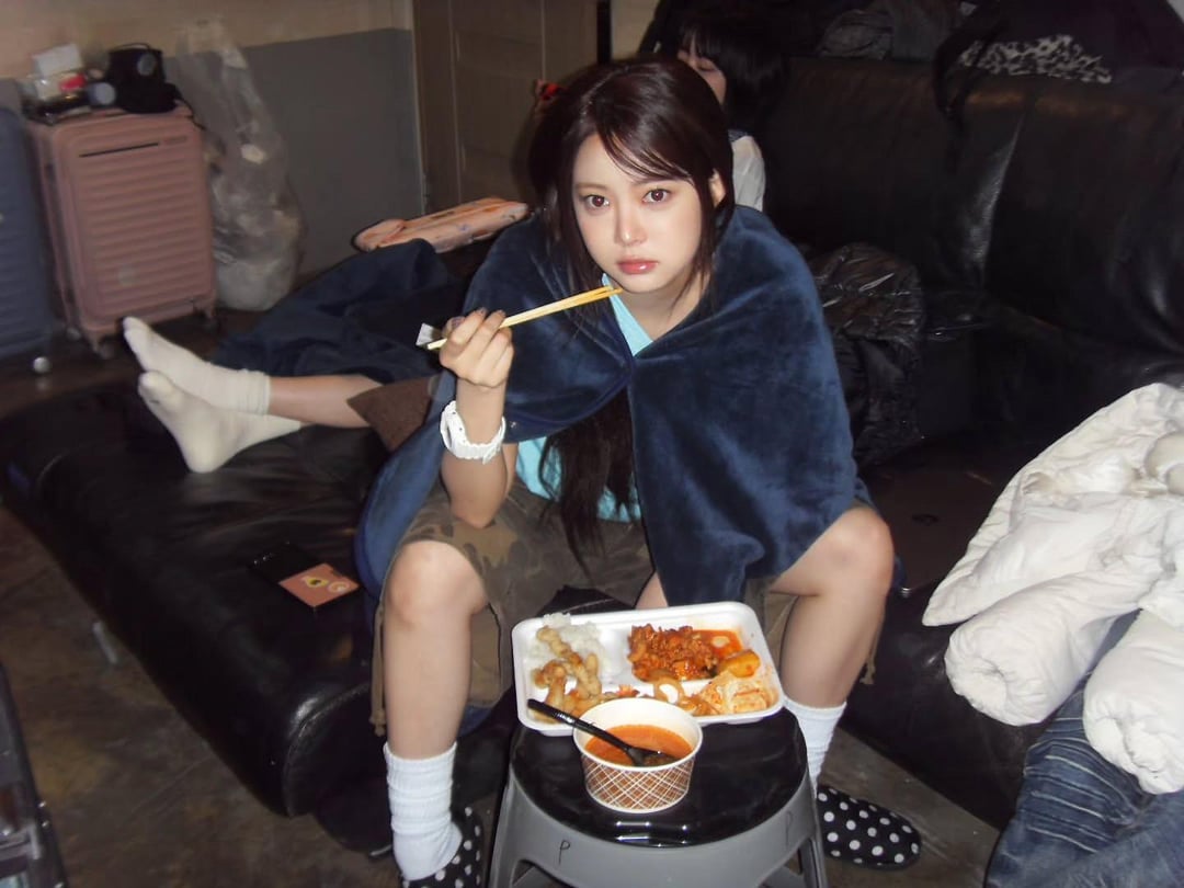 Kkura sleeping behind her while Eunchae serves face đ